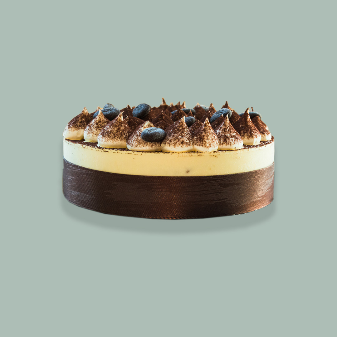 Semifreddo con crema mascarpone e panna con pan di spagna bagnato al caffè e cacao.